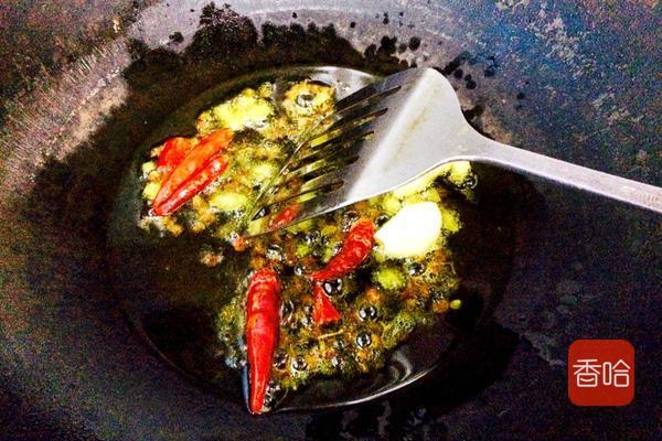 2.锅内油烧热,把辣椒等调料放进去炒