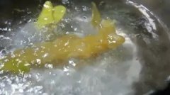 - 锅里加姜片烧水,水开之后将处理干净的小花胶放进去,开盖煮大约2到3分钟,捞出花胶投入冰水里继续浸泡4到5个小时基本上就差不多了。